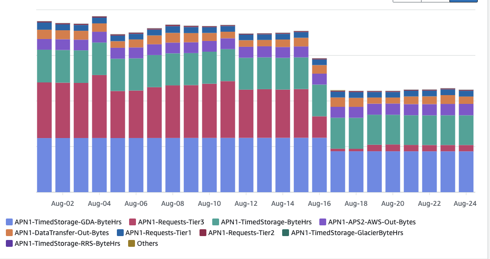 ただ、前回の AWSのコストを45%削減した話 にも簡単に書いた通り、以前からライフサイクル設定で Glacier Deep Archive に変換することはやっていました。